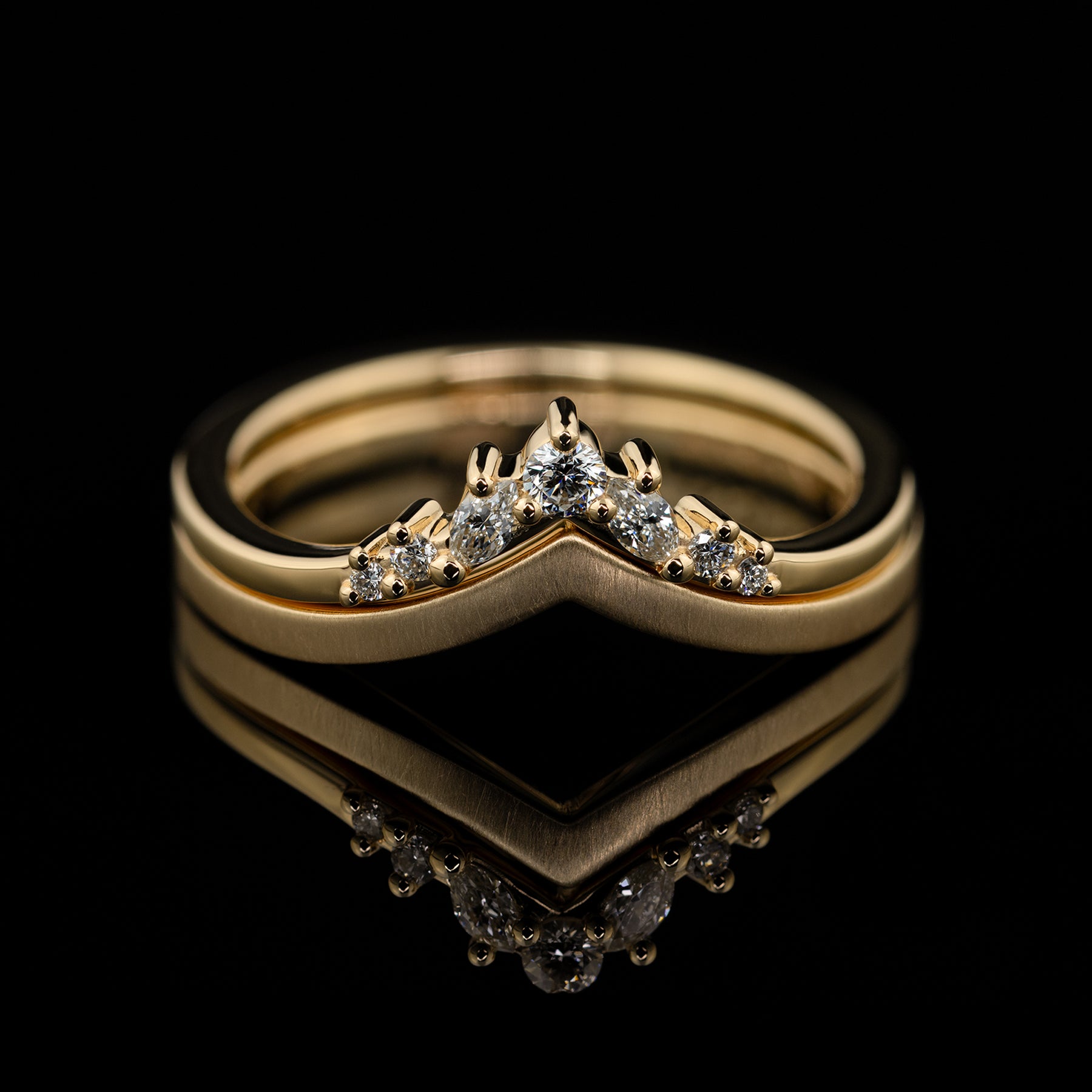 Vivia ist mit einer dezenten Breite von nur 1.4 mm die kleine Schwester von Vivienne. Dieser Ring ist noch zarter, wunderbar zurückhaltend aber nicht weniger elegant. Als filigraner Vorsteckring schmiegt sich Vivia sich ganz wunderbar an all unsere V-förmigen Designs an oder unterstreicht die besondere Wirkung eines Solitärs durch seine klare und feminine Linie.