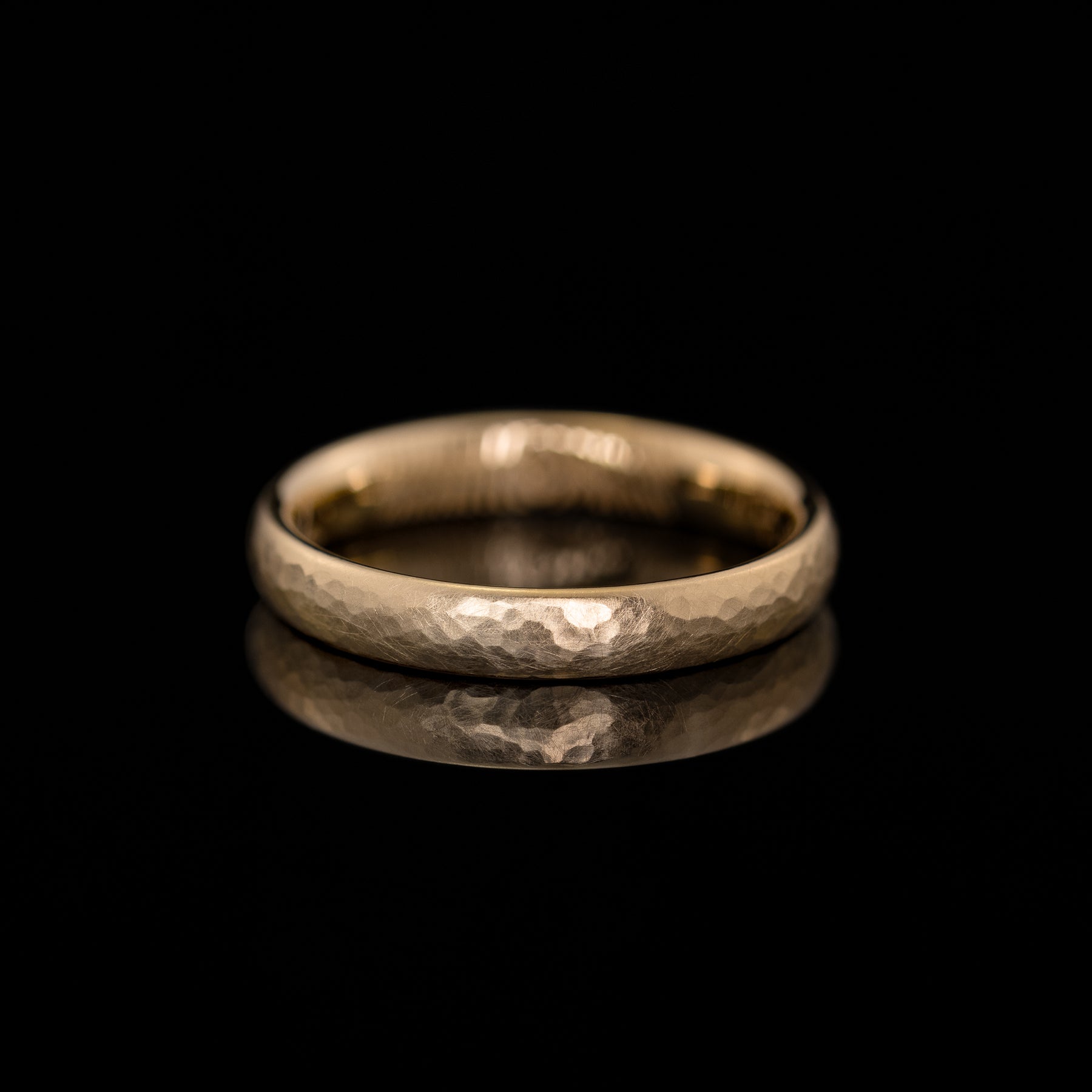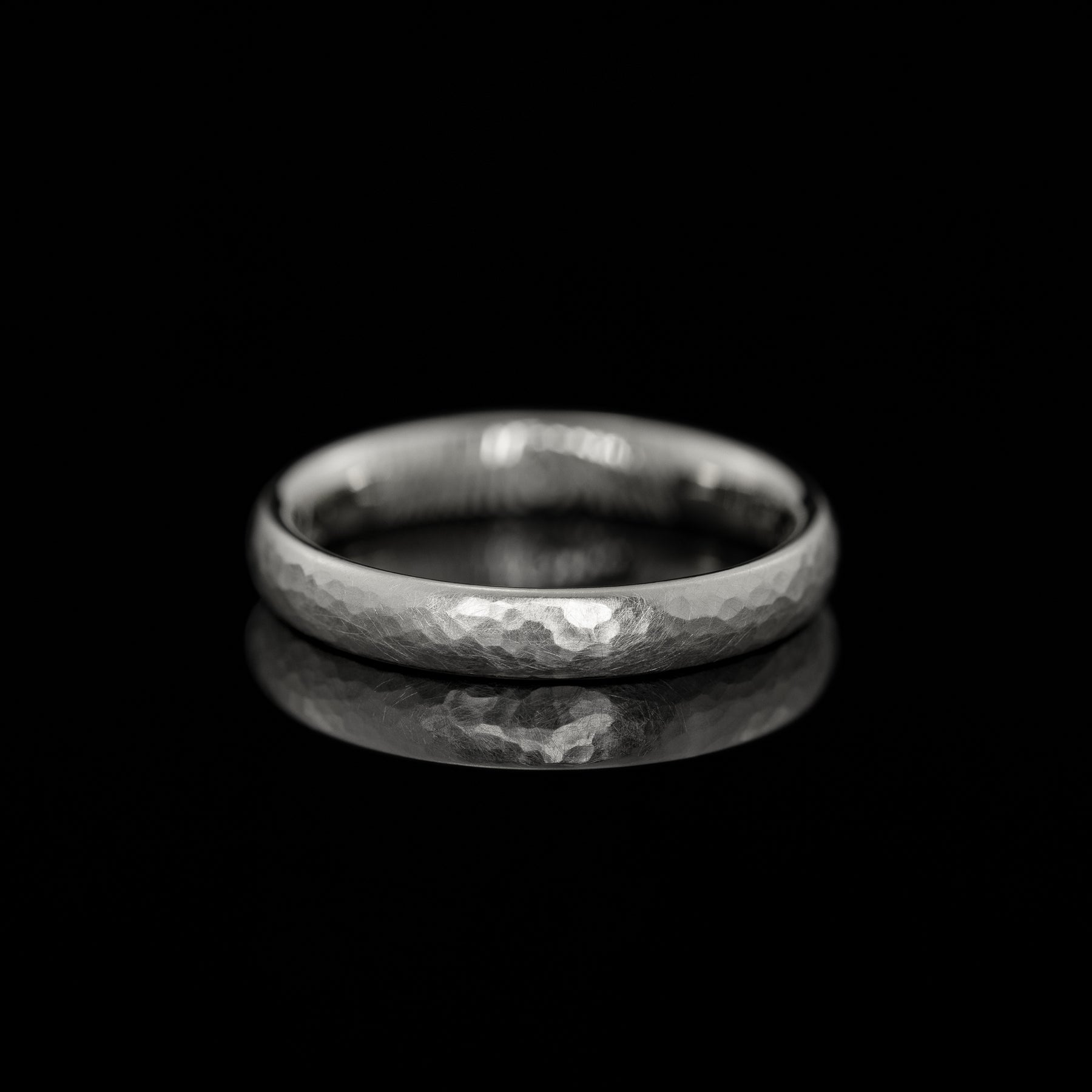 Mila ist ein zarter Ehering, der durch seine besondere Oberfläche lebendig wirkt. Der kleine, runde Hammerschlag lässt ihn organisch schimmern: mal sanft matt, mal glänzend im Licht. Kein Ring gleicht dem anderen, denn jede Oberfläche entsteht in präziser Handarbeit und macht Mila zu einem ganz persönlichen Stück.